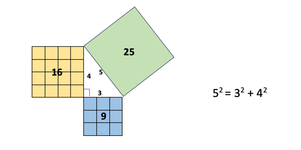 Well, in a right-angled triangle, the square of the hypotenuse (longest side) is equal to the sum of the squares of the other 2 sides.
