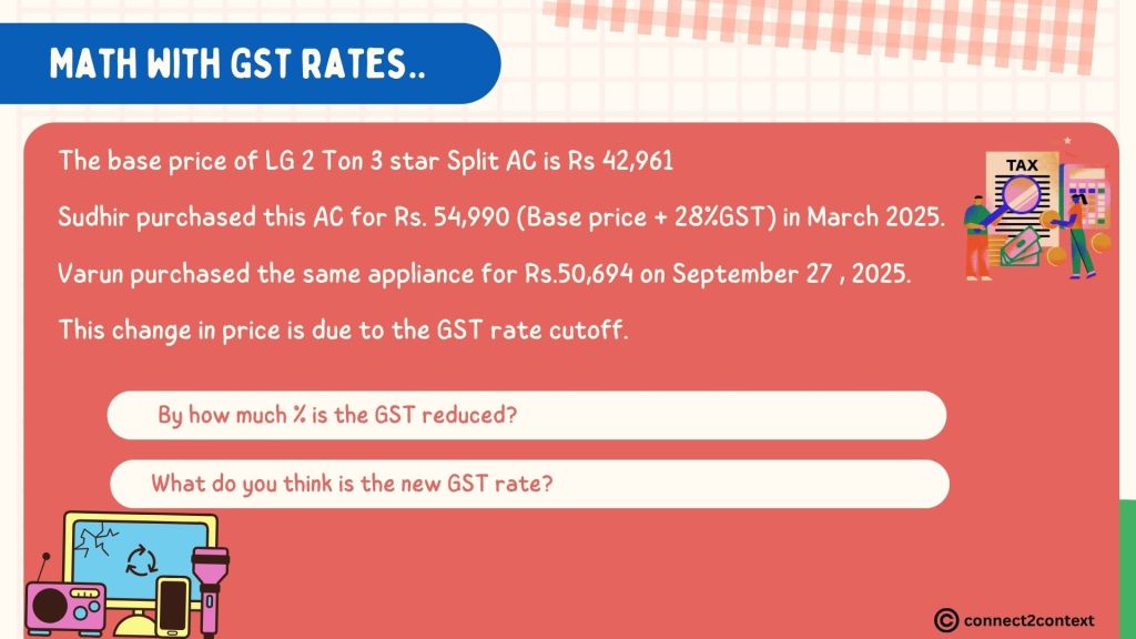 New GST rate: 10% of Rs 50 is Rs 5; So, 5% of Rs 50 is Rs 2.5 (new GST amount added to the base price)